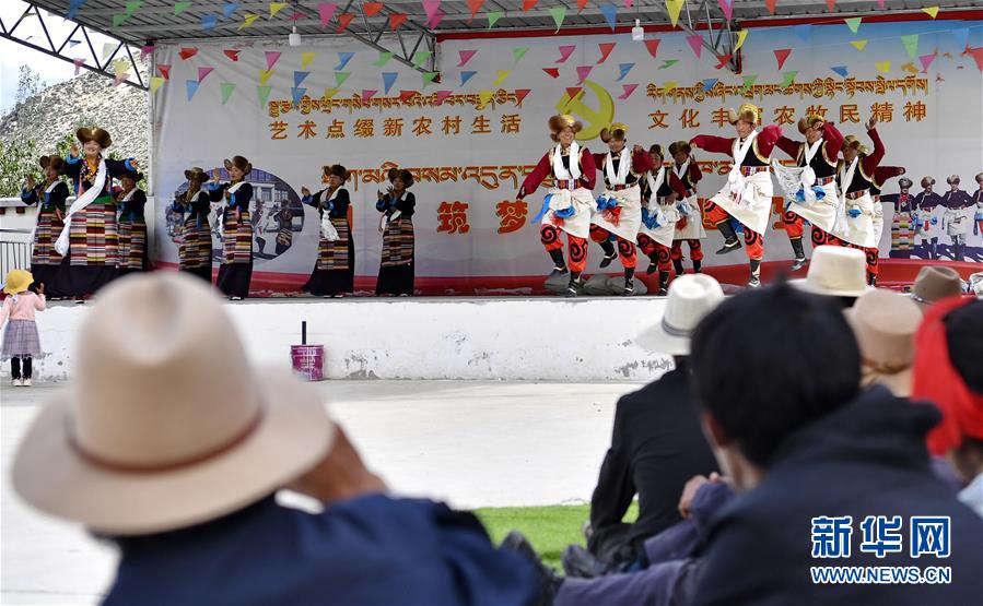 山南市扎囊縣桑耶鎮(zhèn)乃卡村村民觀看文藝演出隊的表演(7月7日攝)。西藏自治區(qū)山南市為弘揚民族文化,加強(qiáng)村居精神文明建設(shè),組建了560余個行政村文藝演出隊。演員來自百姓,服務(wù)百姓,一年四季都有演出,豐富了百姓的文化生活。新華社記者張汝鋒攝