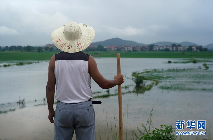 7月9日,邵忠如在圩堤上觀(guān)察水情,不遠(yuǎn)處就是他的村子。