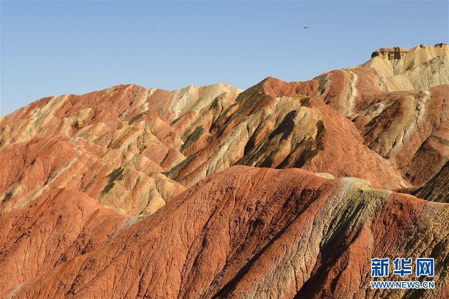 盛夏時(shí)節(jié),地處甘肅省張掖市的張掖世界地質(zhì)公園迎來最美季節(jié)。張掖世界地質(zhì)公園最顯著的特征是有由色彩斑斕的褶皺泥巖和砂巖組成的彩色丘陵,同時(shí)還擁有自然侵蝕在山體上形成的“窗欞狀”“宮殿式”丹霞地貌和古代洋殼殘余九個泉蛇綠巖套。
