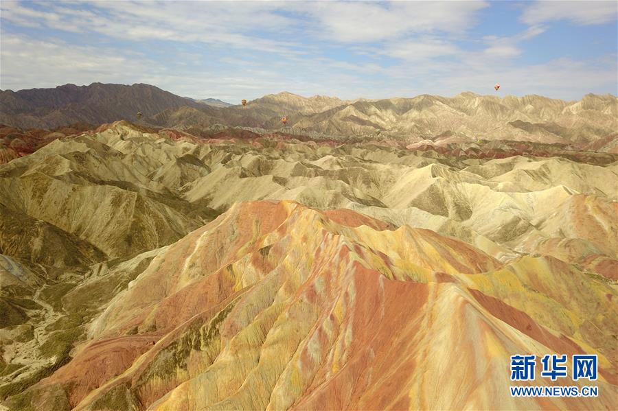 這是7月27日拍攝的張掖世界地質(zhì)公園七彩丹霞景區(qū)景觀(無人機(jī)照片)。新華社記者 范培珅 攝