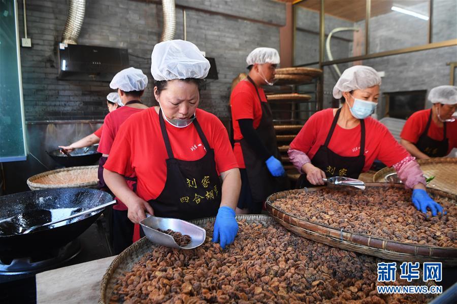8月5日,工作人員在制作豐盛古鎮(zhèn)特色美食——四合胡豆。近年來,重慶市巴南區(qū)引入社會資本,按照“修舊如舊、適度開發(fā)”的原則對豐盛古鎮(zhèn)進行保護性修繕和景區(qū)化打造,讓古鎮(zhèn)在保留原有歷史人文風貌的同時,煥發(fā)新活力。新華社記者王全超攝