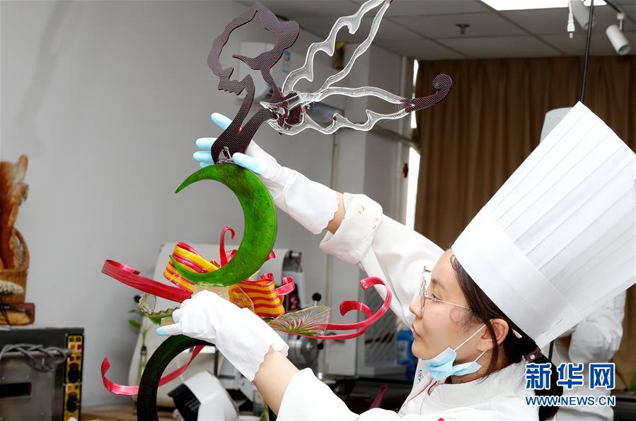 8月5日,糖藝比賽參賽選手在創(chuàng)作中。當(dāng)日,第二十一屆全國焙烤職業(yè)技能競(jìng)賽上海賽區(qū)選拔賽,在上海市現(xiàn)代食品職業(yè)技能培訓(xùn)中心舉行,來自上海、江蘇、浙江等地的近60名焙烤行業(yè)技師,在藝術(shù)面包、傳統(tǒng)糕點(diǎn)、糖藝和藝術(shù)巧克力等項(xiàng)目中進(jìn)行比拼,在充滿焙烤香氣的賽場(chǎng)上展現(xiàn)技藝。新華社記者方喆攝