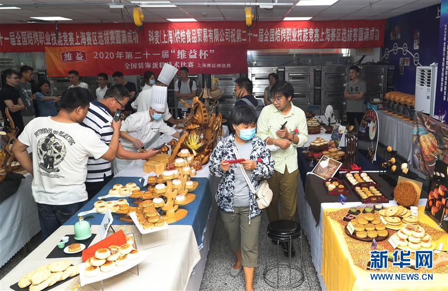 8月5日,觀眾在展示區(qū)觀看參賽選手的作品。當日,第二十一屆全國焙烤職業(yè)技能競賽上海賽區(qū)選拔賽,在上海市現代食品職業(yè)技能培訓中心舉行,來自上海、江蘇、浙江等地的近60名焙烤行業(yè)技師,在藝術面包、傳統(tǒng)糕點、糖藝和藝術巧克力等項目中進行比拼,在充滿焙烤香氣的賽場上展現技藝。新華社記者方喆攝