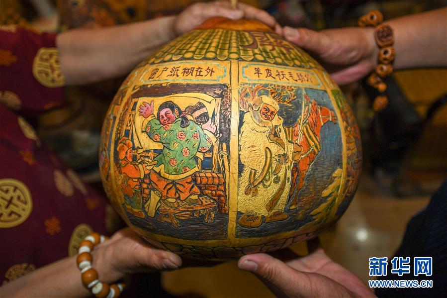 這是侯景偉創(chuàng)作的民俗主題葫蘆工藝品(8月5日攝)。今年55歲的吉林四平人侯景偉自幼與家人學(xué)習(xí)雕刻、烙畫藝術(shù)。經(jīng)過多年潛心研究,他將浮雕和烙畫工藝相結(jié)合,通過拋光、起稿、雕刻、烙燙、套色等十余道工藝,制作展現(xiàn)傳統(tǒng)文化、民俗故事的葫蘆工藝品。2020年,侯景偉被評為四平市非物質(zhì)文化遺產(chǎn)項(xiàng)目侯氏葫蘆雕刻烙畫代表性傳承人。他說:“希望有更多人加入到非遺傳承隊(duì)伍中,讓小葫蘆‘講’出更多民俗故事?!毙氯A社記者張楠攝