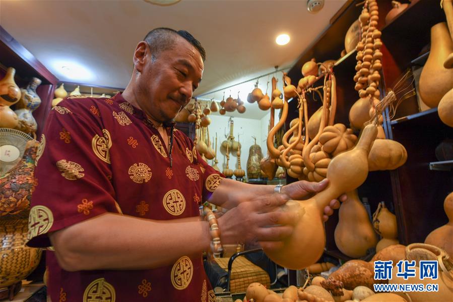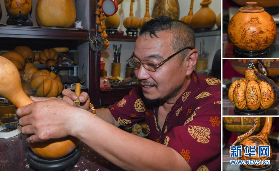 8月5日,侯景偉挑選適合創(chuàng)作的葫蘆。今年55歲的吉林四平人侯景偉自幼與家人學(xué)習(xí)雕刻、烙畫藝術(shù)。經(jīng)過多年潛心研究,他將浮雕和烙畫工藝相結(jié)合,通過拋光、起稿、雕刻、烙燙、套色等十余道工藝,制作展現(xiàn)傳統(tǒng)文化、民俗故事的葫蘆工藝品。2020年,侯景偉被評為四平市非物質(zhì)文化遺產(chǎn)項(xiàng)目侯氏葫蘆雕刻烙畫代表性傳承人。他說:“希望有更多人加入到非遺傳承隊(duì)伍中,讓小葫蘆‘講’出更多民俗故事。”新華社記者張楠攝