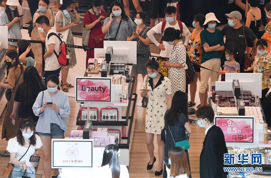 8月6日,游客在三亞國際免稅城購物。新華社記者楊冠宇攝