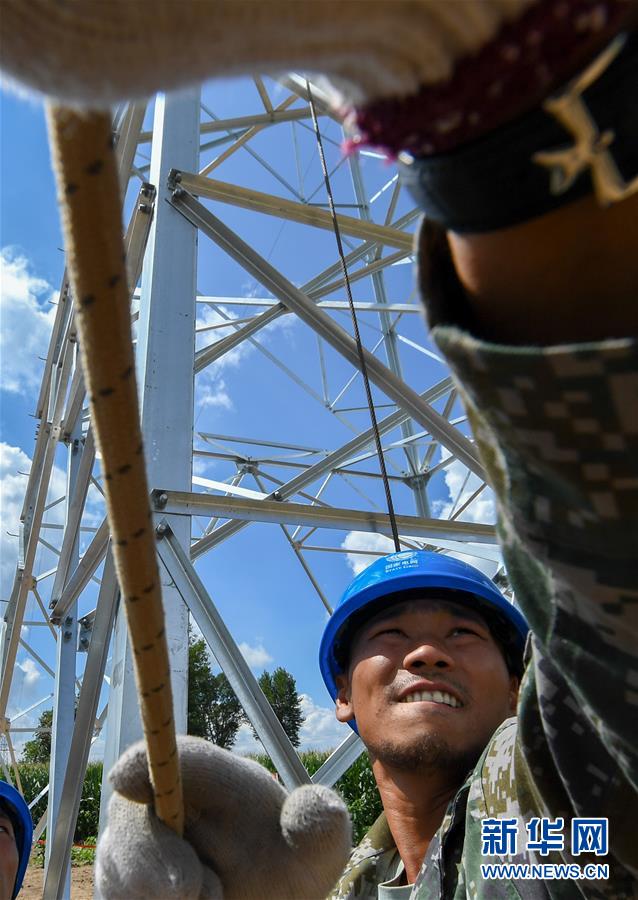 8月6日,送電工在吉林省長(zhǎng)春市城郊的一處輸電鐵塔上施工作業(yè)。吉林省長(zhǎng)春市連續(xù)多日出現(xiàn)高溫天氣,國網(wǎng)長(zhǎng)春供電公司輸電運(yùn)檢中心的送電工們每天清晨開始作業(yè),不畏烈日“烤”驗(yàn),堅(jiān)守工作崗位,確保工程按計(jì)劃完成。新華社記者張楠攝