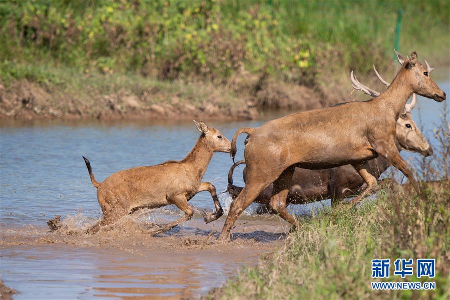這是8月7日在東洞庭湖麋鹿和鳥類救治避難中心拍攝的麋鹿。位于湖南省岳陽市的東洞庭湖麋鹿和鳥類救治避難中心成立于2016年9月,占地400余畝,中心自建成后就承擔(dān)起東洞庭湖區(qū)域全部麋鹿的救援、醫(yī)治、康復(fù)和喂養(yǎng)任務(wù)。目前該中心共有14只麋鹿正在接受救助。新華社記者陳思汗攝