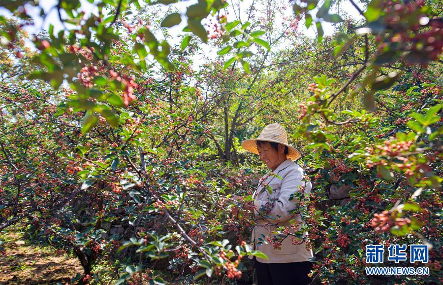 8月9日,武安市徘徊鎮(zhèn)后李甲村農(nóng)民在花椒種植基地采摘花椒。近日,河北省武安市花椒進入收獲季節(jié),當(dāng)?shù)剞r(nóng)民搶抓農(nóng)時,花椒種植基地里一派忙碌景象。近年來,武安市將花椒產(chǎn)業(yè)作為脫貧增收的重要抓手,因地制宜擴大花椒種植規(guī)模。目前,全市花椒種植面積約12萬畝。新華社記者王曉攝。