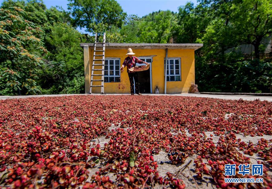 8月9日,武安市徘徊鎮(zhèn)后李甲村農(nóng)民在涼曬采摘的花椒。近日,河北省武安市花椒進入收獲季節(jié),當(dāng)?shù)剞r(nóng)民搶抓農(nóng)時,花椒種植基地里一派忙碌景象。近年來,武安市將花椒產(chǎn)業(yè)作為脫貧增收的重要抓手,因地制宜擴大花椒種植規(guī)模。目前,全市花椒種植面積約12萬畝。新華社記者王曉攝。