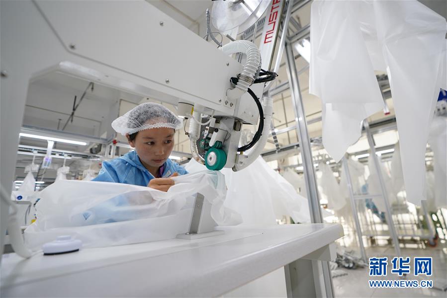 8月9日,甘肅拓奇扶貧車間的員工在服裝加工生產(chǎn)線上作業(yè)。甘肅拓奇扶貧車間位于甘肅省臨夏回族自治州積石山縣,是依托東西部扶貧協(xié)作平臺(tái)引進(jìn)的服裝加工企業(yè)。扶貧車間建成投產(chǎn)以來帶動(dòng)就業(yè)近300人,其中吸納建檔立卡貧困戶就業(yè)110人,實(shí)現(xiàn)了貧困群眾就地就近就業(yè)增收的目的,為助推當(dāng)?shù)孛撠毠?jiān)及縣域經(jīng)濟(jì)發(fā)展發(fā)揮了重要作用。新華社記者邢廣利攝。