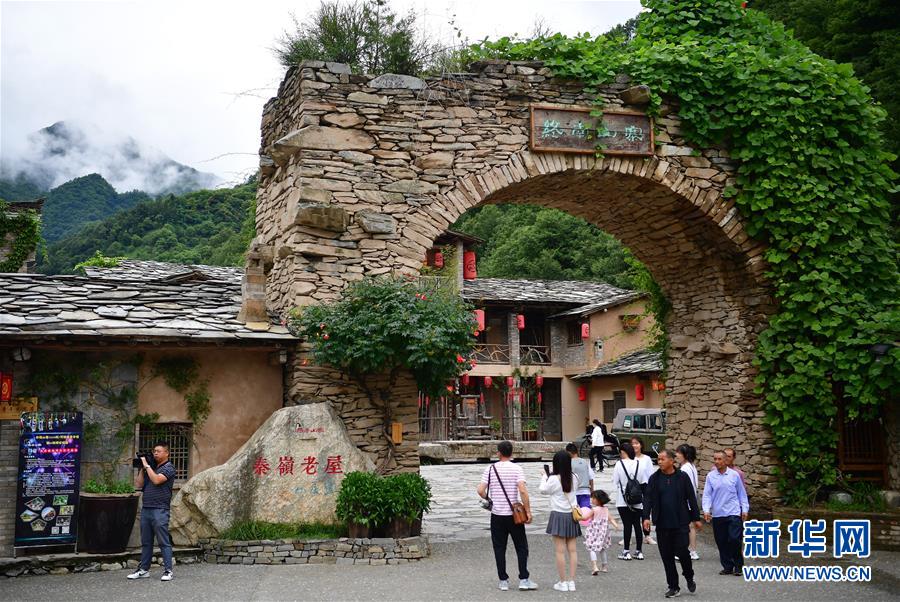 游客在陜西省商洛市柞水縣終南山寨景點游覽(7月22日攝)。新華社記者邵瑞攝。
