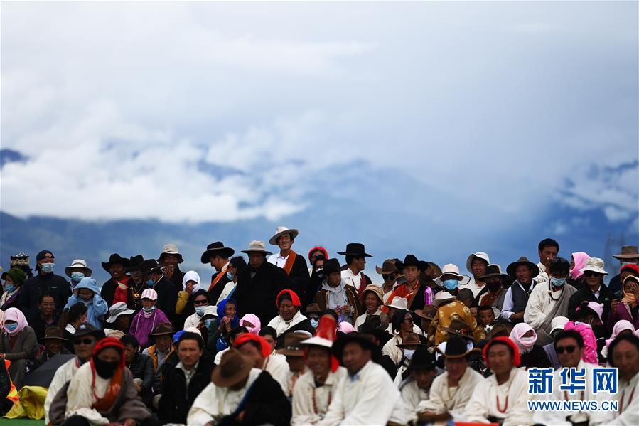 8月10日,牧民在拔河比賽現(xiàn)場(chǎng)觀看比賽。新華社記者普布扎西攝。