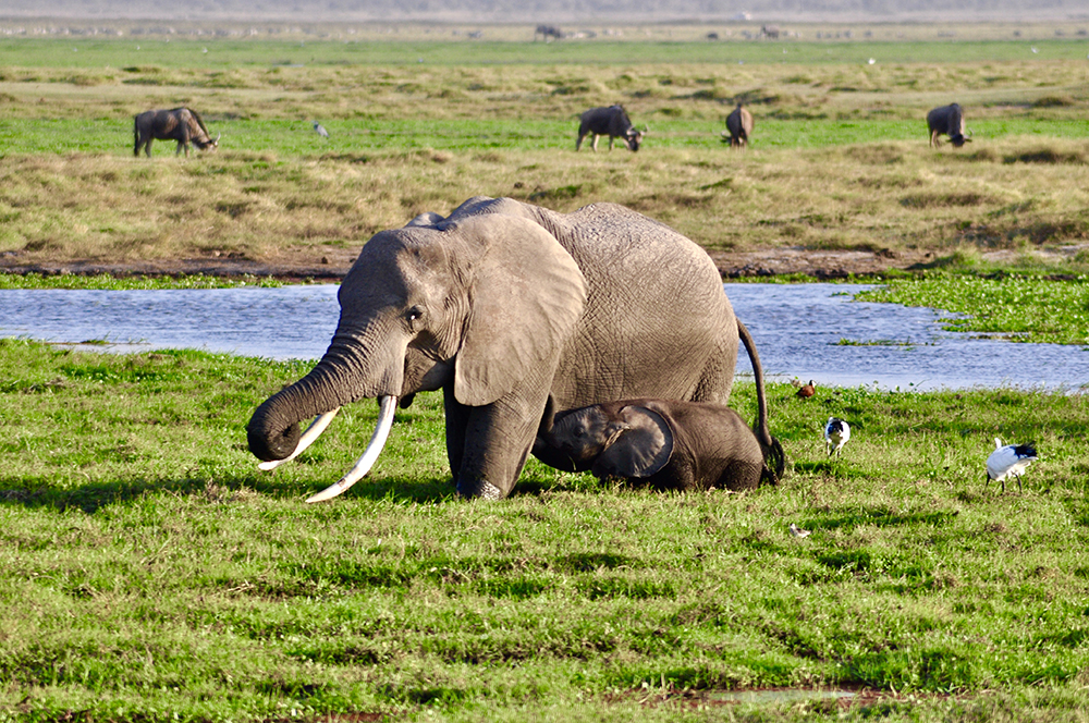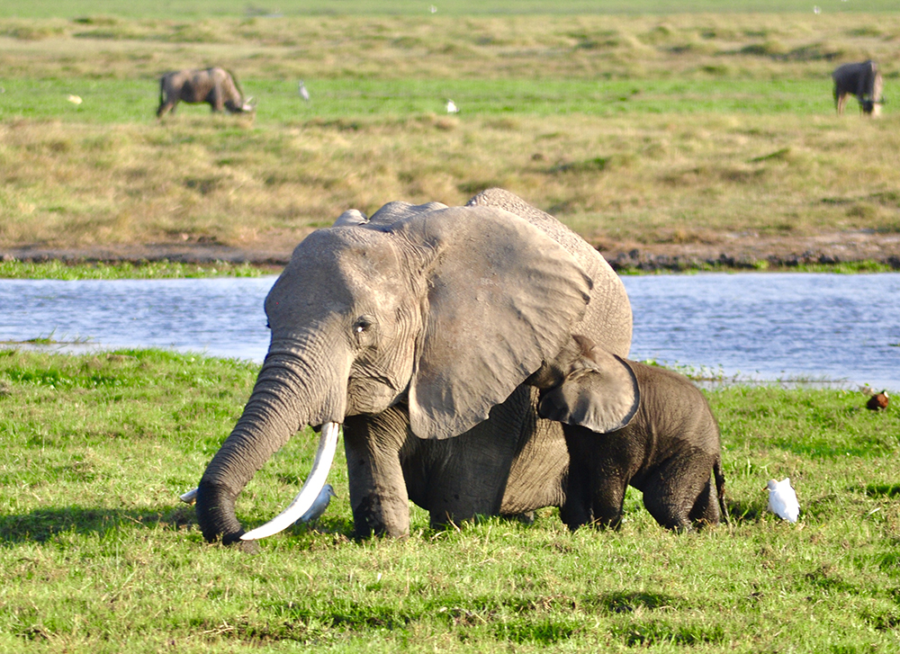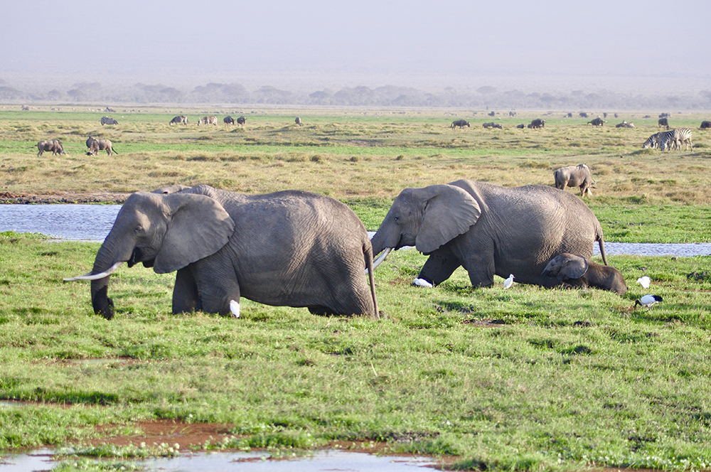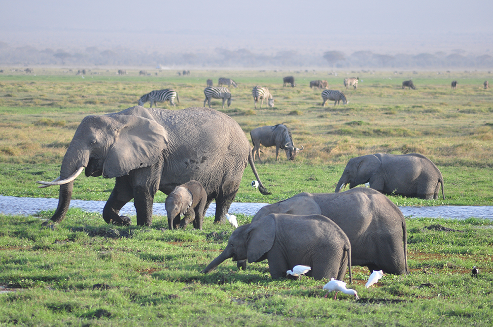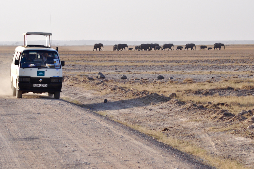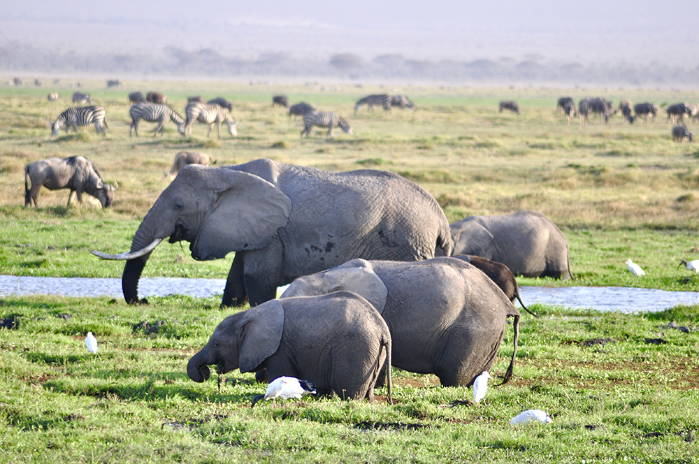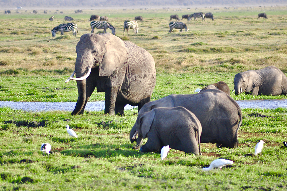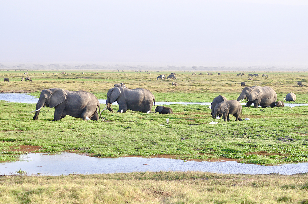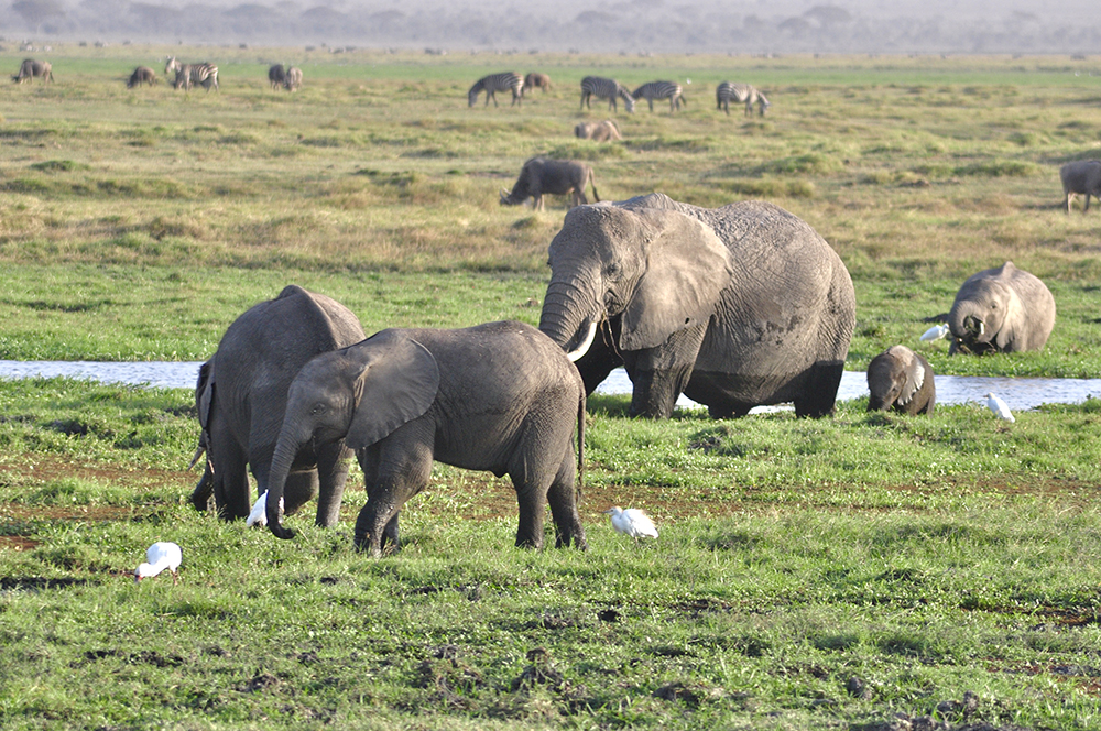 肯尼亞東南部,與坦桑尼亞接壤的安博賽利國家公園,距內(nèi)羅畢240公里,因水草豐美而成為野生非洲大象的樂園。