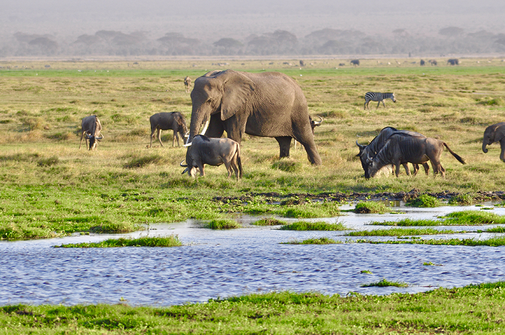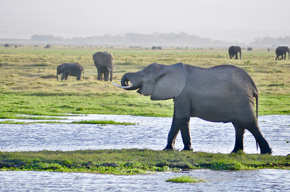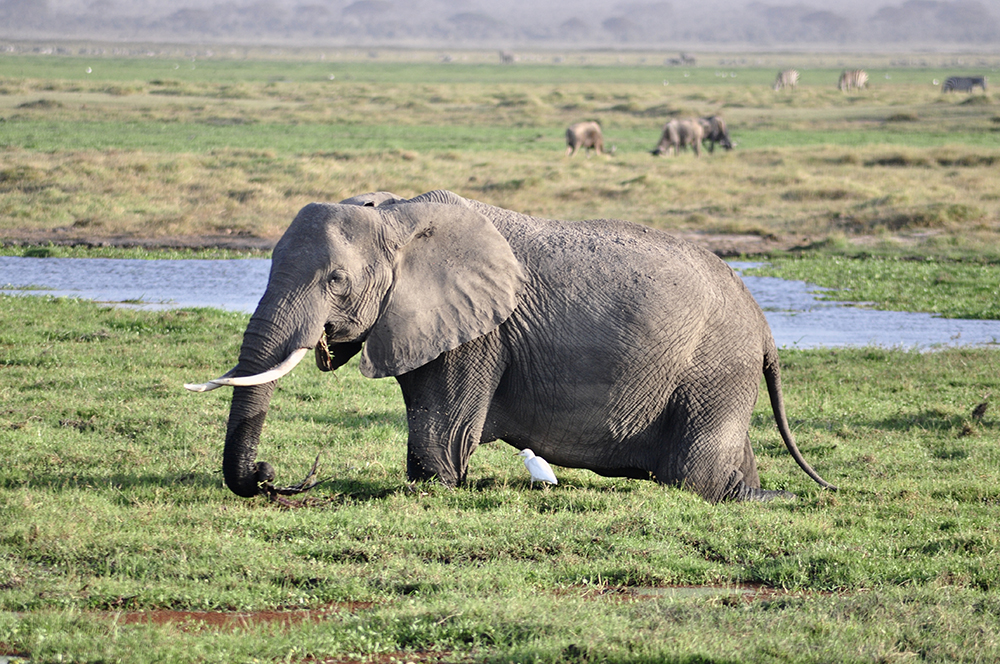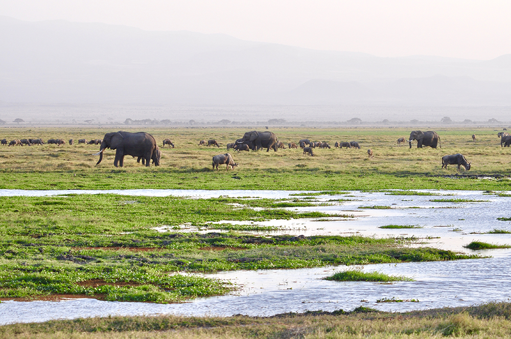 如今在肯尼亞,大象已經(jīng)受到最為嚴(yán)格的保護(hù),安博塞利國家公園就是一座野生草原象的保護(hù)地。圖為野生大象家園里的大象。李仁奇 攝