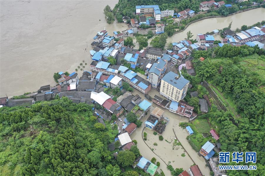 8月13日,在重慶市潼南區(qū)玉溪鎮(zhèn),涪江水位明顯上漲,洪水倒灌進場鎮(zhèn)(無人機照片)。受上游強降雨影響,嘉陵江近日出現(xiàn)明顯漲水過程,“嘉陵江2020年第1號洪水”已在嘉陵江支流涪江形成。重慶市正式啟動洪水防御Ⅱ級應(yīng)急響應(yīng)。據(jù)初步統(tǒng)計,截至13日16時30分,位于涪江畔的重慶市潼南區(qū),沿涪江7個鎮(zhèn)街不同程度受災(zāi),受災(zāi)人數(shù)8209人,轉(zhuǎn)移人口6658人,農(nóng)作物受災(zāi)面積5579畝。新華社記者黃偉攝