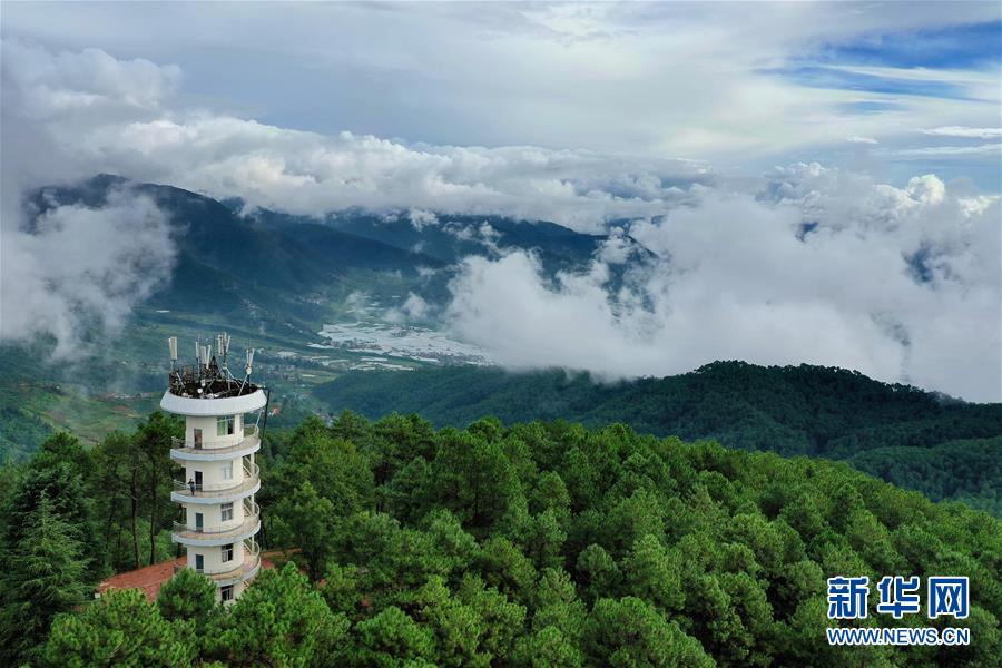 邛海瀘山國家級風(fēng)景名勝區(qū)掩映在云霧中(8月13日攝,無人機(jī)照片)。 新華社記者 李賀 攝