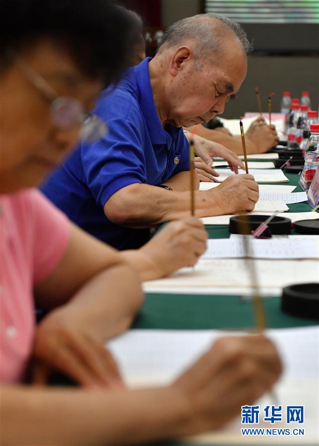 8月13日,陜西師范大學(xué)退休教師郭祖儀(右)書(shū)寫(xiě)錄取通知書(shū)。當(dāng)日,陜西師范大學(xué)2020年手寫(xiě)錄取通知書(shū)正式開(kāi)筆。該校自2007年起采用毛筆書(shū)寫(xiě)錄取通知書(shū)的方式,為新生傳遞佳音。今年,學(xué)校十余位退休教師、在職教師、校友代表等書(shū)法愛(ài)好者將為約4500名新錄取的本科生送上帶著墨香的大學(xué)錄取通知書(shū)。新華社記者張博文攝
