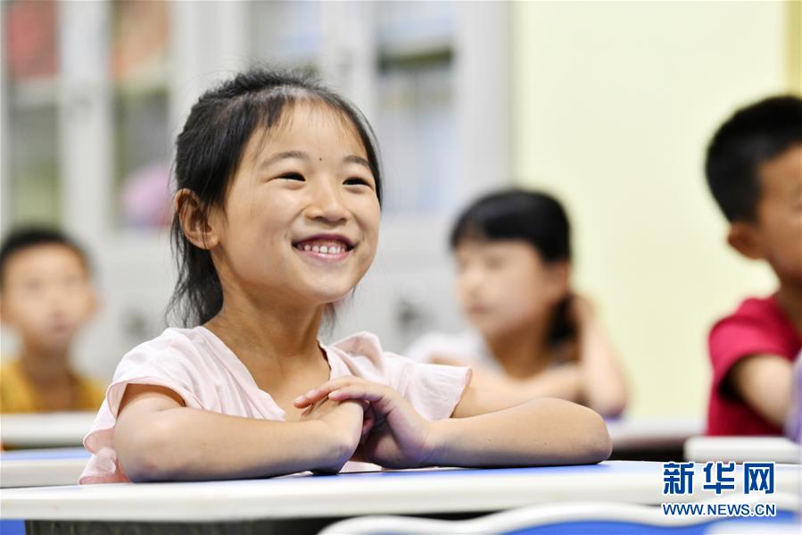 8月13日,貴州省思南縣雙塘街道麗景社區(qū)易地扶貧搬遷安置點的孩子在上音樂課。新華社記者楊文斌攝