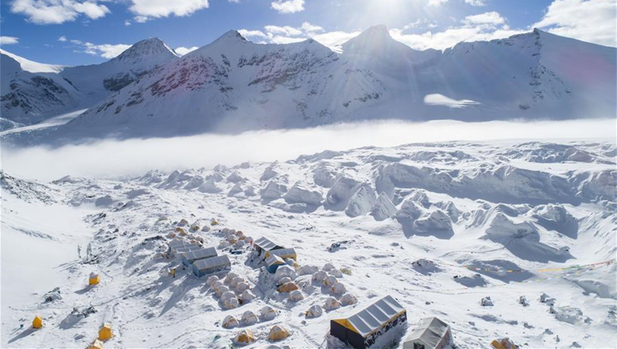 從空中俯瞰珠穆朗瑪峰北坡,生機(jī)勃勃的高原濕地、蜿蜒曲折的盤山公路、壯麗秀美的絨布冰川,還有安靜的村莊和熱鬧的登山營(yíng)地,共同構(gòu)成一幅壯美畫卷。