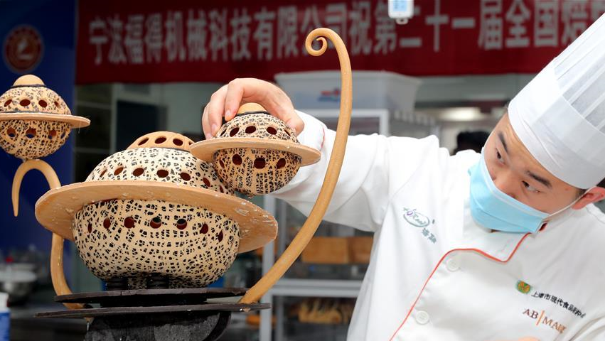 當日,第二十一屆全國焙烤職業(yè)技能競賽上海賽區(qū)選拔賽,在上海市現(xiàn)代食品職業(yè)技能培訓中心舉行,來自上海、江蘇、浙江等地的近60名焙烤行業(yè)技師,在藝術(shù)面包、傳統(tǒng)糕點、糖藝和藝術(shù)巧克力等項目中進行比拼,在充滿焙烤香氣的賽場上展現(xiàn)技藝。