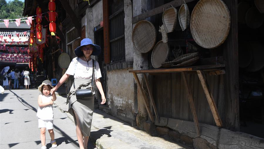 游客在陜西省商洛市柞水縣終南山寨景點游覽。