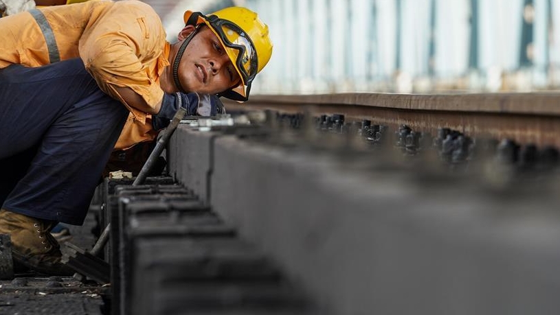 今年28歲的郭繼浩和班組其他9名工友主要負責南京長江大橋鐵路橋梁設(shè)備的日常巡查、養(yǎng)修和臨時性搶修等工作。