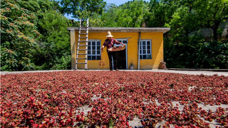 近日,河北省武安市花椒進入收獲季節(jié),當?shù)剞r(nóng)民搶抓農(nóng)時,花椒種植基地里一派忙碌景象。