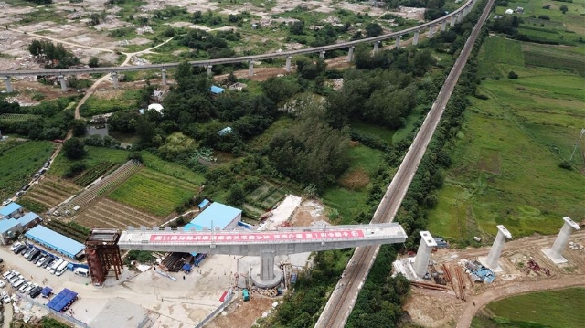 8月9日,中鐵十一局承建的粵港澳大灣區(qū)基礎(chǔ)設(shè)施“硬聯(lián)通”重點工程——廣州南沙港鐵路跨西江特大斜拉橋完成最后一塊鋼箱梁吊裝作業(yè),大橋即將合龍。