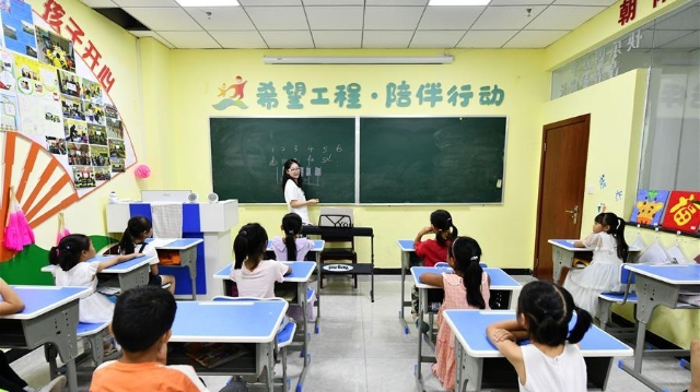 今年暑假期間,在貴州省銅仁市思南縣雙塘街道麗景社區(qū)易地扶貧搬遷安置點,志愿者們利用暑期時間,給安置點的孩子們進行課程輔導。