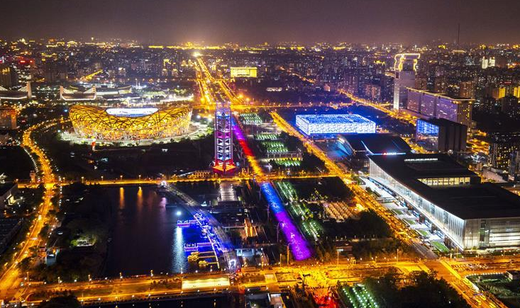 北京中軸線上演“空間光影秀”