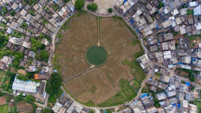 航拍??谒陌倌旯糯?規(guī)劃布局似“太極圖”