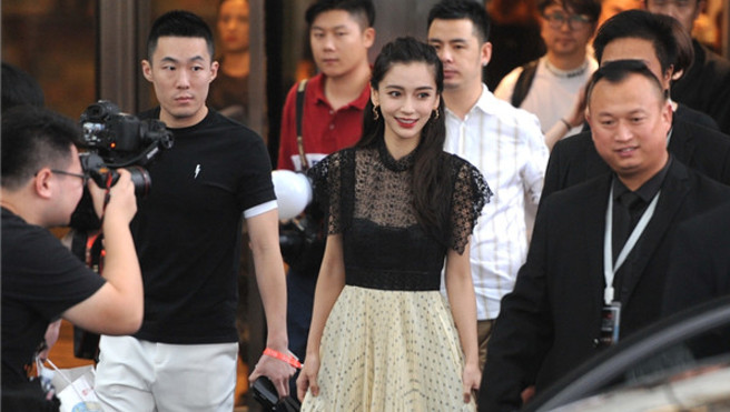 Angelababy穿黑色蕾絲薄紗裙小秀性感