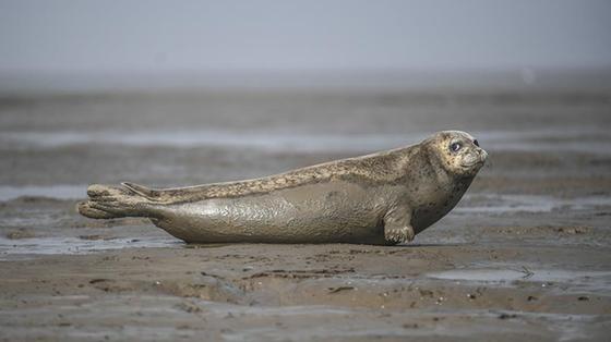 遼寧盤錦雙臺(tái)河口海域?yàn)┩可铣霈F(xiàn)大批洄游棲息的斑海豹。每年2月到5月,成群的斑海豹都會(huì)洄游至遼河入海口處活動(dòng)。