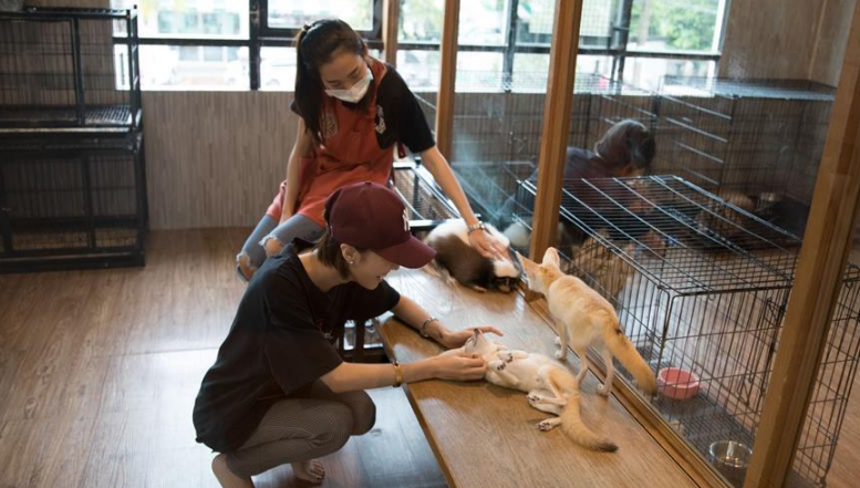 泰國首都曼谷有一間奇妙的動物咖啡館。在這里,顧客不僅能看到幾只可愛的貓咪,還可以在店員的陪伴指導(dǎo)下和貓頭鷹、闊耳狐等動物進(jìn)行親密的接觸。