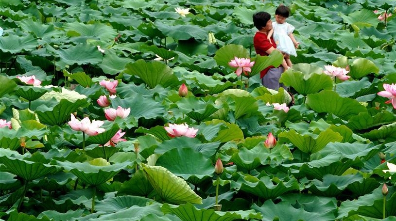 近日,河南鄭州紫荊山公園內的荷花陸續(xù)綻放,吸引大批市民和游客前來觀賞。