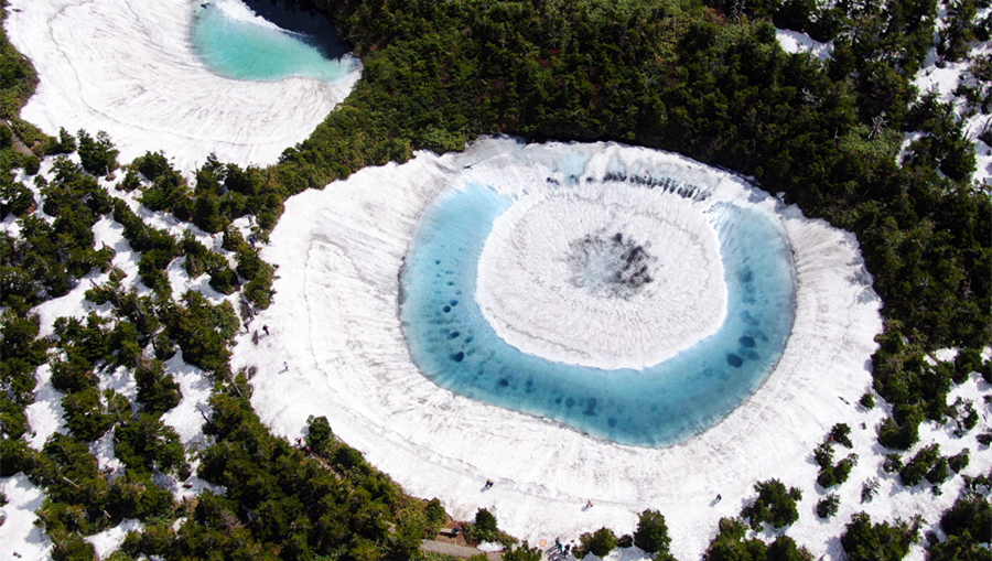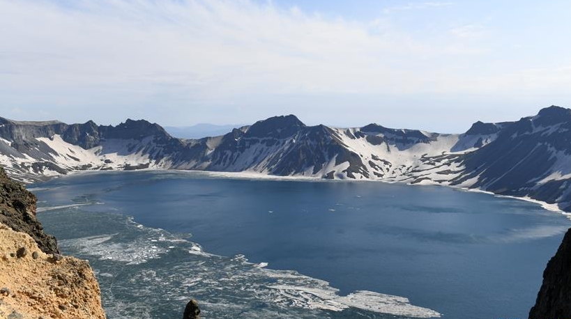 近日,長(zhǎng)白山天池冰層逐漸消融,迎來“開冰季”。