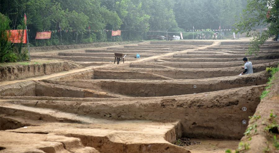 工作人員在河南省開封市州橋及附近汴河遺址進(jìn)行清理發(fā)掘。