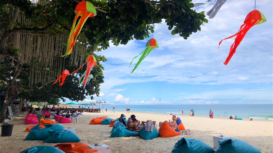 7月26日,游客在泰國東部旅游勝地沙美島享受假期。隨著疫情后逐步解封,泰國東部度假勝地沙美島這幾天恢復(fù)了久違的熱鬧。
