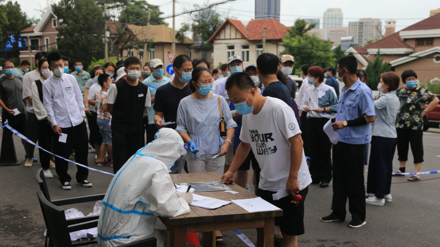 2020年7月26日,遼寧大連,市民進(jìn)行核酸檢測(cè)。