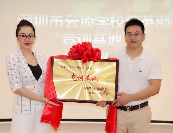 儀式現(xiàn)場(chǎng),云頂學(xué)校精英部唐勇校長(zhǎng)和葉美娜會(huì)長(zhǎng)為“競(jìng)訓(xùn)基地”揭牌,家族夢(mèng)教育邢朝云院長(zhǎng)和葉美娜會(huì)長(zhǎng)為“家長(zhǎng)聯(lián)誼會(huì)”揭牌。