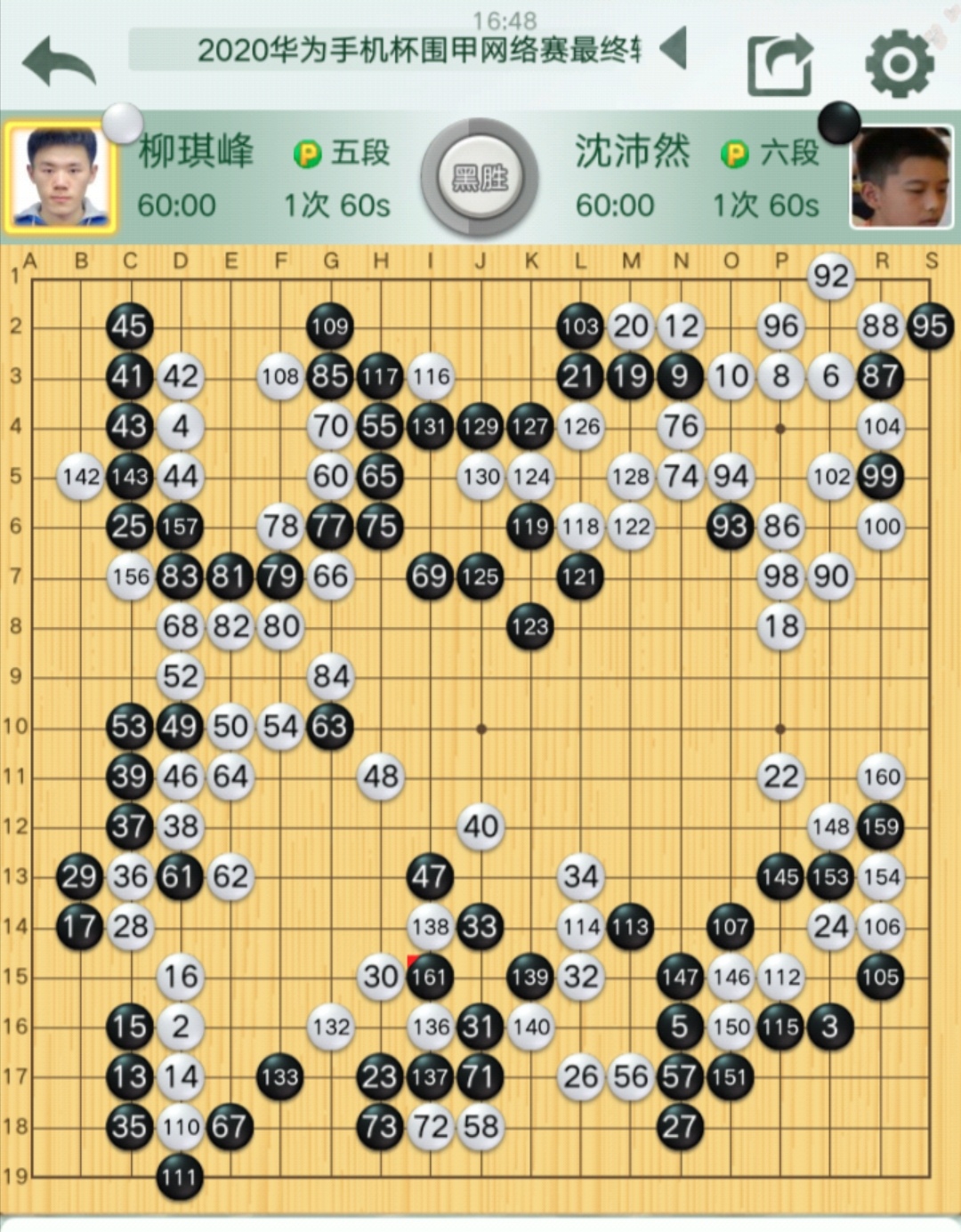 見圳客戶端、深圳新聞網(wǎng)2020年3月17日訊(記者 周錦春)下午2點(diǎn),2020年“華為手機(jī)杯”圍甲網(wǎng)絡(luò)熱身賽第七輪繼續(xù)進(jìn)行,此輪深圳宏發(fā)隊(duì)對(duì)陣上海清一隊(duì)。截止下午4點(diǎn)30分左右,深圳宏發(fā)隊(duì)悉數(shù)收官,最終以4:0全勝戰(zhàn)績(jī)闖過上海清一隊(duì)這一關(guān)。目前,深圳宏發(fā)隊(duì)七輪總積分為14分,在A組坐穩(wěn)小組第三,待A組另三場(chǎng)明日結(jié)束即可見分曉。最后一輪是AB兩組前兩名進(jìn)行同名次的決定賽,仍在騰訊野狐圍棋平臺(tái),時(shí)間是3月19日。