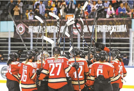 北京時間3月19日,深圳昆侖鴻星女子冰球隊和卡爾加里地獄隊在加拿大萬錦市展開CWHL(加拿大冰球聯(lián)賽)季后賽首輪的最后一場決戰(zhàn)。