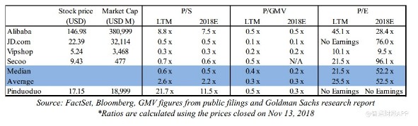 拼多多截至2018年第二季度的12個月市銷率為21.7倍,是行業(yè)巨頭阿里巴巴(8.8倍)的兩倍有余,也是京東(0.5倍)等更成熟的中國電子商務企業(yè)的44倍之多。京東的大部分收入來自直銷,而非商家服務,因此這種對比并不完美,但這只是一個例證。若按照2018年的市盈率計算,與阿里巴巴和其他中國電子商務公司相比,拼多多的股價仍然顯得非常昂貴(11.5倍)。