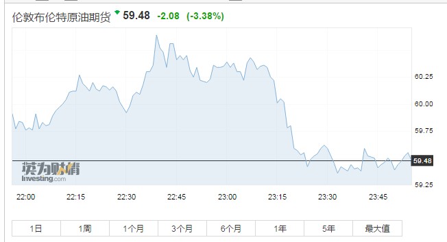 布倫特原油期貨報(bào)59.48美元/桶,跌3.38%。