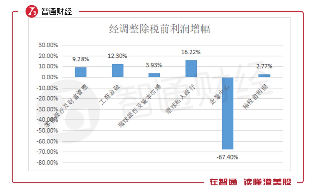 其中,由于利率上升、客戶增加以及英國和香港按揭業(yè)務實現(xiàn)逾200億美元增幅,帶動零售銀行及財富管理業(yè)務出現(xiàn)9.28%幅度的增長。然而,受四季度市場波動影響,財富管理業(yè)務經(jīng)調(diào)整收入較前三季度有輕微下降。