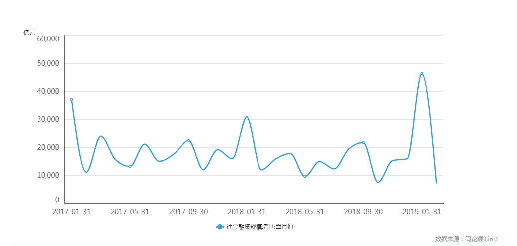 3月10日,央行官網(wǎng)發(fā)布2019年2月社會(huì)融資規(guī)模數(shù)據(jù)。據(jù)統(tǒng)計(jì),2019年2月,社會(huì)融資規(guī)模增量為7030億,比上年同期減少4847億,大幅低于預(yù)期。同時(shí),也遠(yuǎn)低于一月的4.64萬(wàn)億。