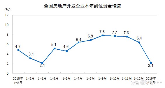 1-2月份,房地產(chǎn)開(kāi)發(fā)企業(yè)到位資金24497億元,同比增長(zhǎng)2.1%,增速比2018年全年回落4.3個(gè)百分點(diǎn)。其中,國(guó)內(nèi)貸款4976億元,下降0.5%;利用外資52億元,增長(zhǎng)3.3倍;自籌資金7279億元,下降1.5%;定金及預(yù)收款7366億元,增長(zhǎng)5.6%;個(gè)人按揭貸款3458億元,增長(zhǎng)6.5%。