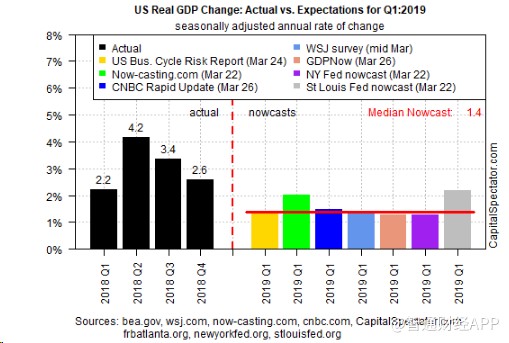 據(jù)智通財(cái)經(jīng)APP了解,美國(guó)經(jīng)濟(jì)分析局(BEA)將于4月下旬發(fā)布經(jīng)濟(jì)報(bào)告,根據(jù)《資本觀察家》(Capital Spectator)編制的一組預(yù)估數(shù)據(jù)所得,美國(guó)第一季度GDP將繼續(xù)放緩至1.4%(經(jīng)季節(jié)性調(diào)整的年增長(zhǎng)率)。此預(yù)估值與本月早些時(shí)候公布的預(yù)測(cè)維持一致。