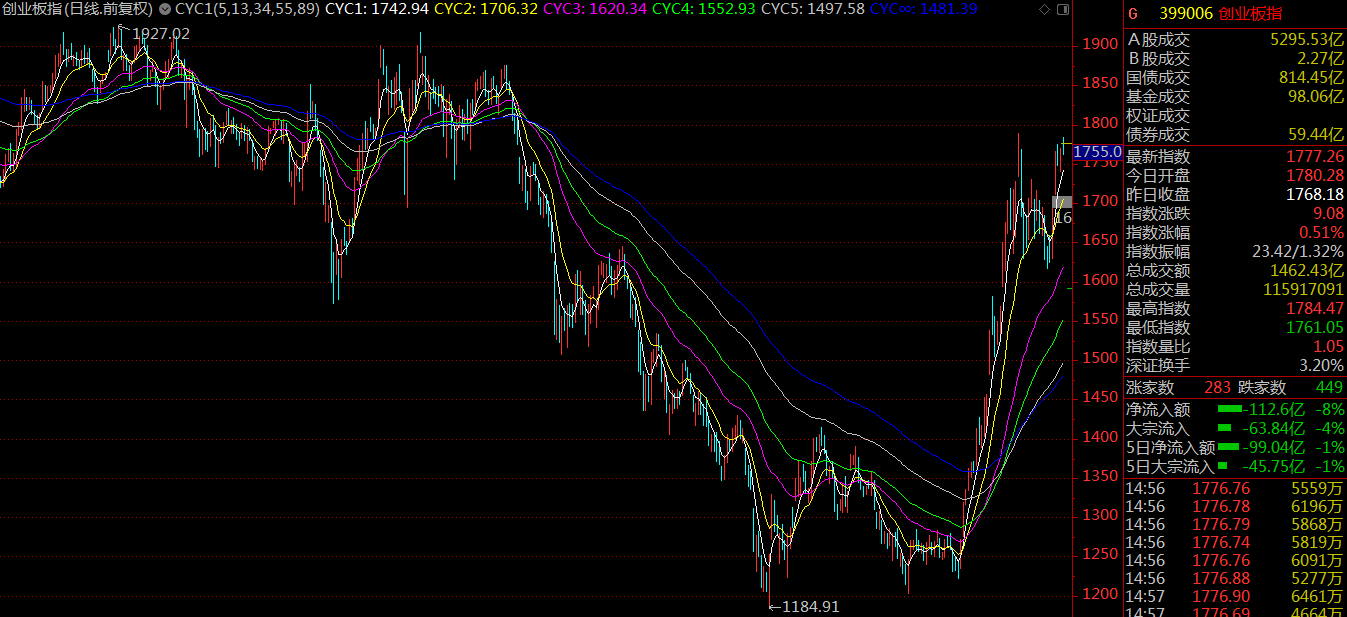 周一市場突破三月份的中樞結構,開啟了新一輪的上漲,市場情緒良好,基本維持了日均百股漲停的規(guī)模。至周四,滬指上漲5.04%報收3246.57點,深成指漲5.14%報收10415.8點,創(chuàng)業(yè)板漲4.94%報收1777.26點。值得留意的是,相較于第一波行情創(chuàng)業(yè)板指數(shù)大幅跑贏上證指數(shù)來說,這一次代表小盤股的創(chuàng)業(yè)板指數(shù)要弱于預期。